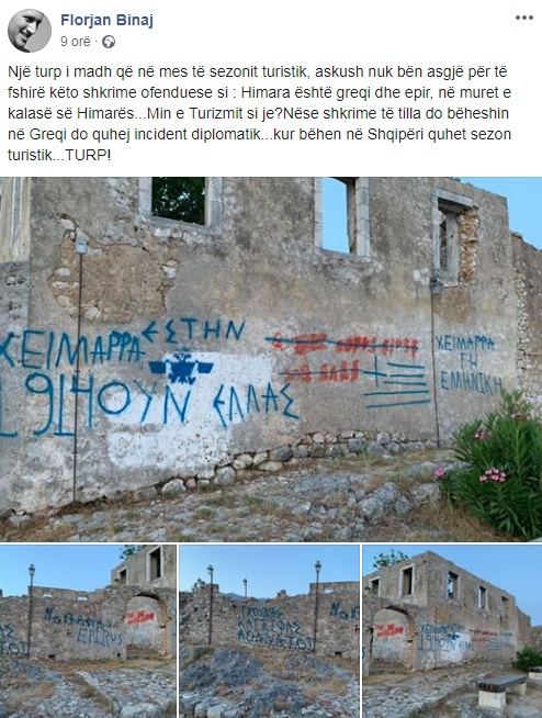 Një turp i madh që në mes të sezonit turistik, askush nuk bën asgjë për të fshirë këto shkrime ofenduese si : Himara është greqi dhe epir, në muret e kalasë së Himarës…Min e Turizmit si je?Nëse shkrime të tilla do bëheshin në Greqi do quhej incident diplomatik…kur bëhen në Shqipëri quhet sezon turistik…TURP!
