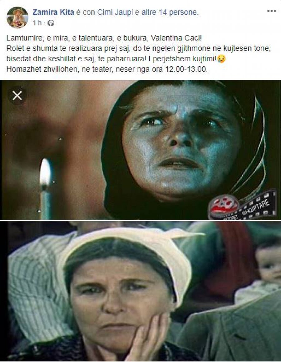 Lajmin e ka bërë të ditur një tjetër aktore e njohur nga Korça, Zamira Kita, nëpërmjet një publikimi në profilin personal të saj të Facebook. Në këtë postim, Zamira ka theksuar se kujtimi i saj dhe rolet e saj në filma do të jenë të paharruara përgjithmonë.