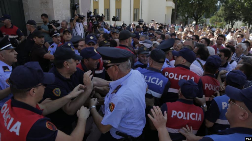 Momente të forta tensioni u rregjistruan që prej mëngjesit të sotëm përpara godinës së Teatrit Kombëtar në Tiranë, ku pati përplasje mes forcave të policisë dhe një grupi artistësh dhe qytetarësh që kundërshtojnë projektin e qeverisë për të prishur godinën ekzistuese dhe ndërtimin aty, në kuadër të një kompleksi të madh pallatesh shumëkatëshe, dhe të një ndërtese të re moderne të Teatrit.