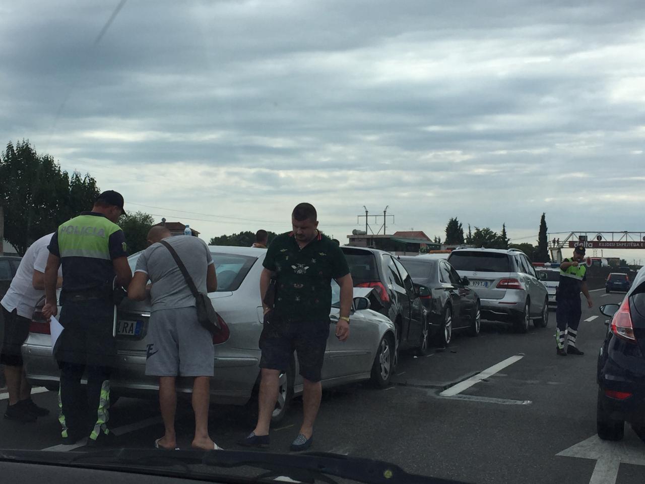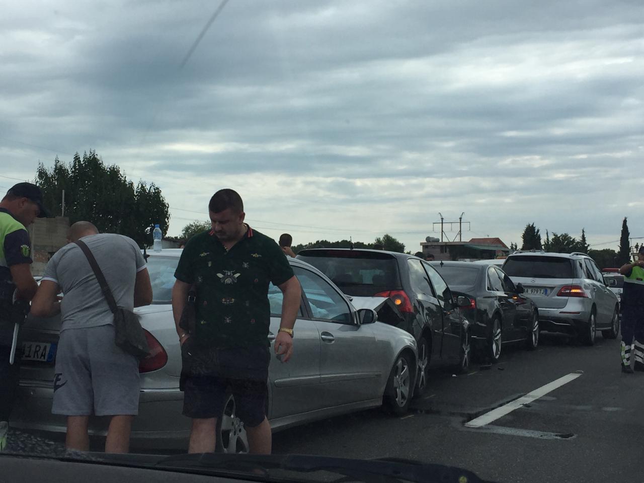 Në aksident u përfshinë 4 makina luksoze, të cilat u përplasën në seri me njëra-tjetrën, duke sjellë edhe bllokim të trafikut për disa minuta në autostradën Tiranë-Durrës.