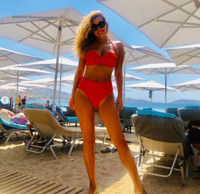 Në llogarinë e saj në Instagram, ajo ka hedhur dy foto ku shihet vetëm me bikini rozë, duke ekspozuar edhe trupin e saj.