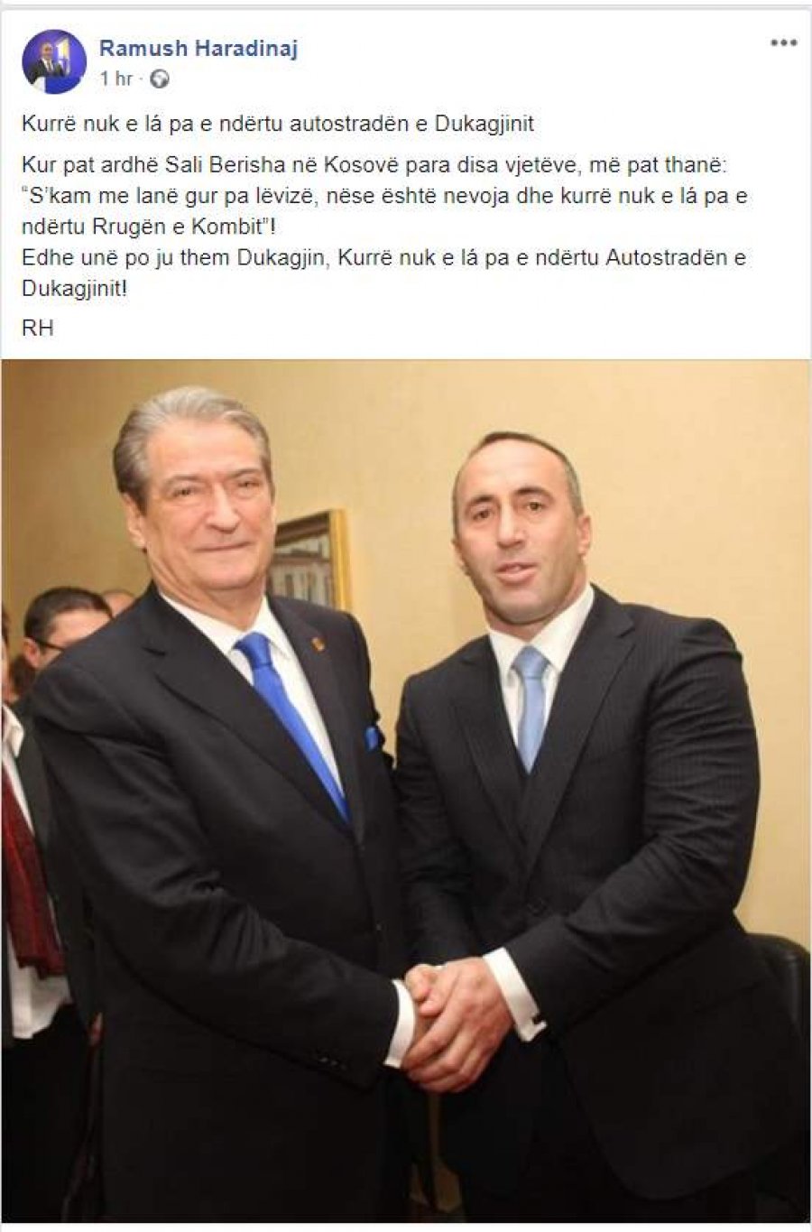 RH’, shkruan Ramush Haradinaj në Facebook.