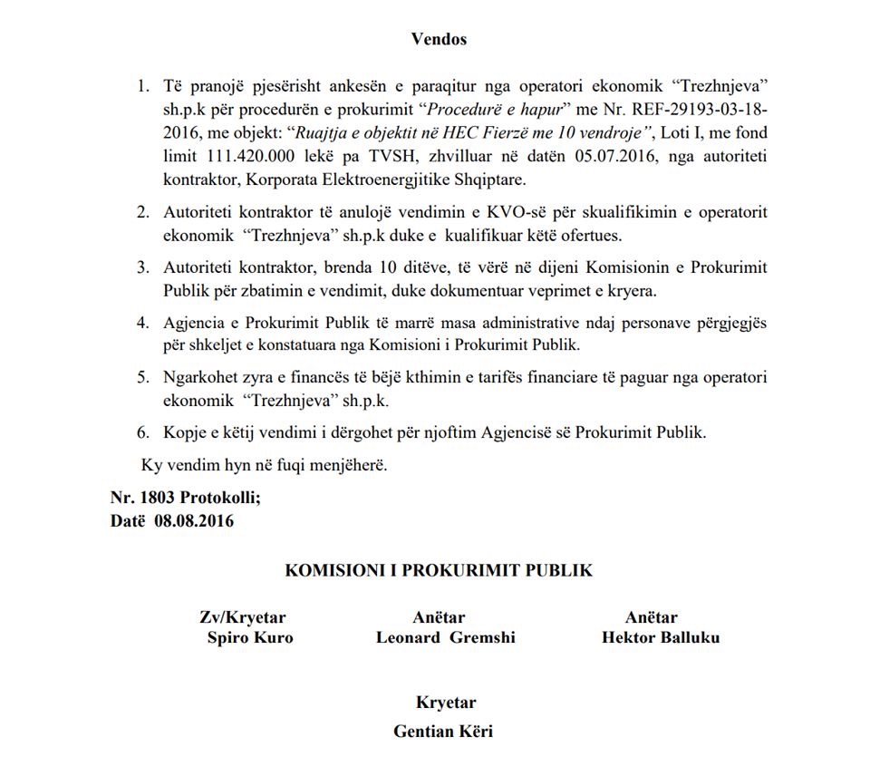 Ndërkohë KESH sh.a, ndodhet në proces gjyqësor për lotin e parë, pasi, pavërësisht se Komisoni i Prokurimit Publik, me vendim nr. 2155 prot, datë 12.10.2016 e shpalli të pavlefshme kontratën, ky institucion, në shkelje flagrante të ligjit, vazhdoi me ekzekutimin e saj.