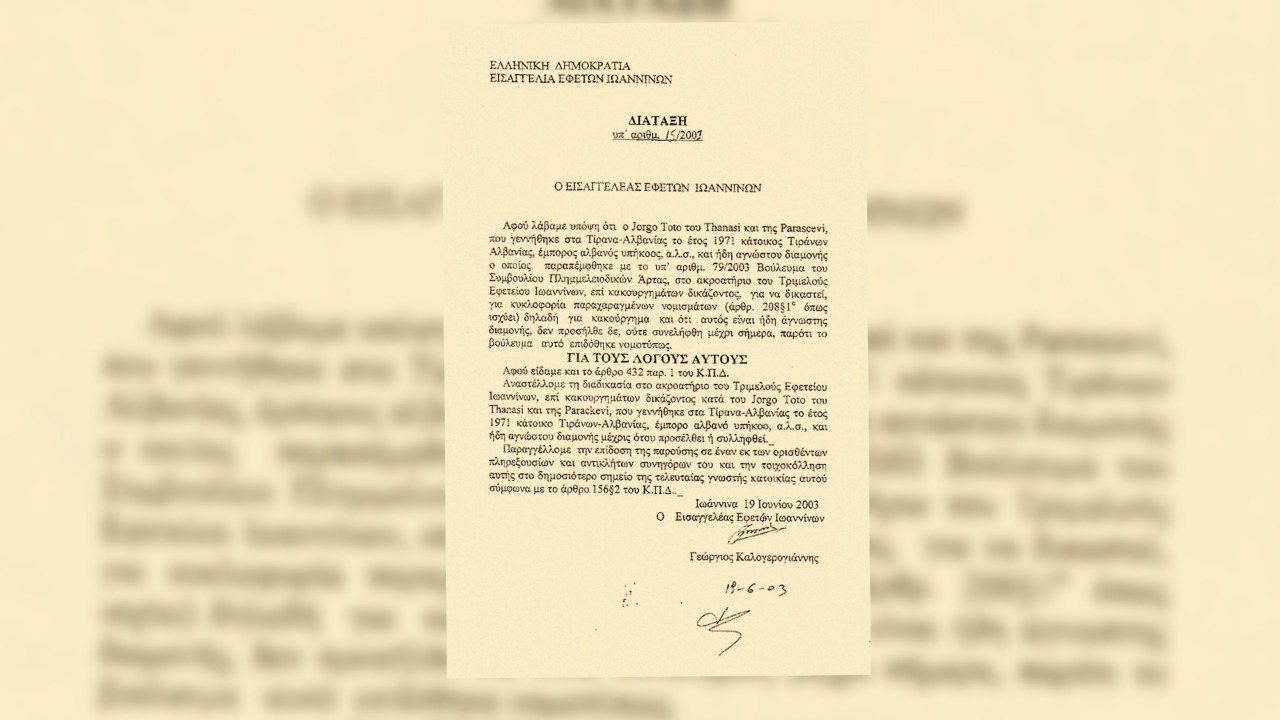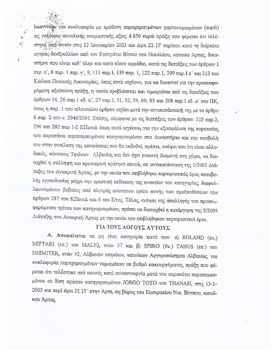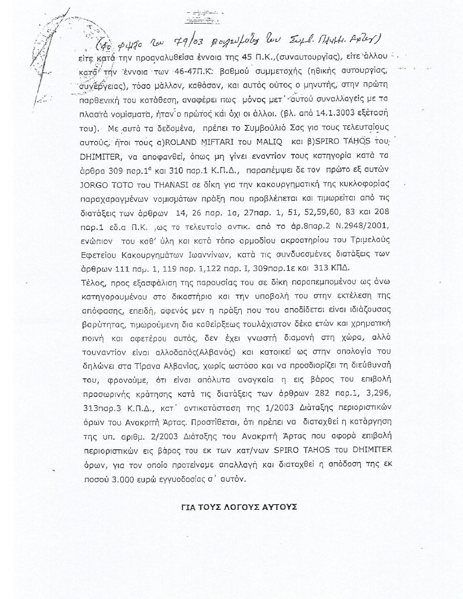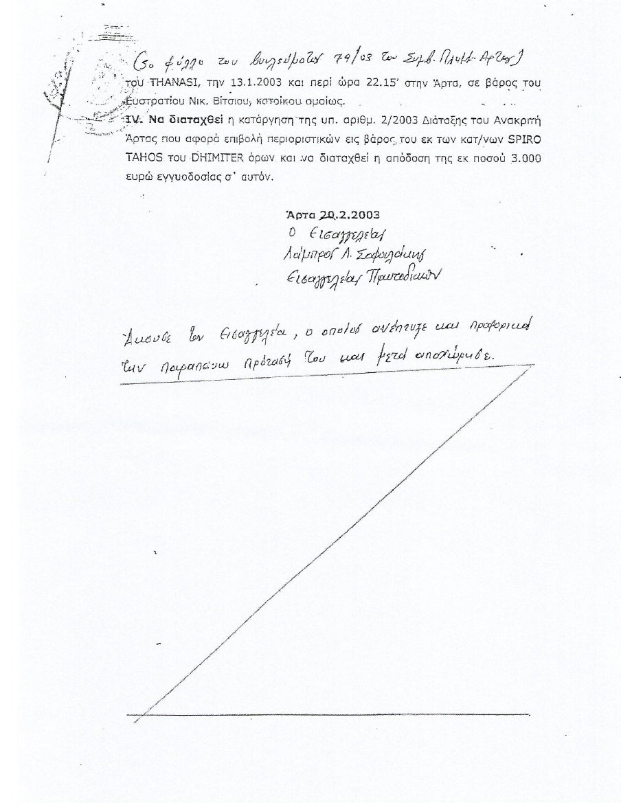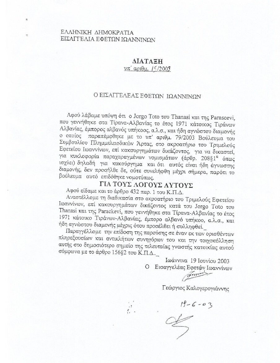 Ky që shikoni këtu është vendimi i Prokurorisë dhe i Gjykatës së Janinës, i Qershorit 2003.
