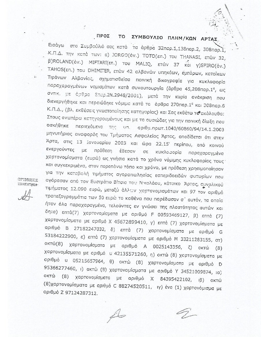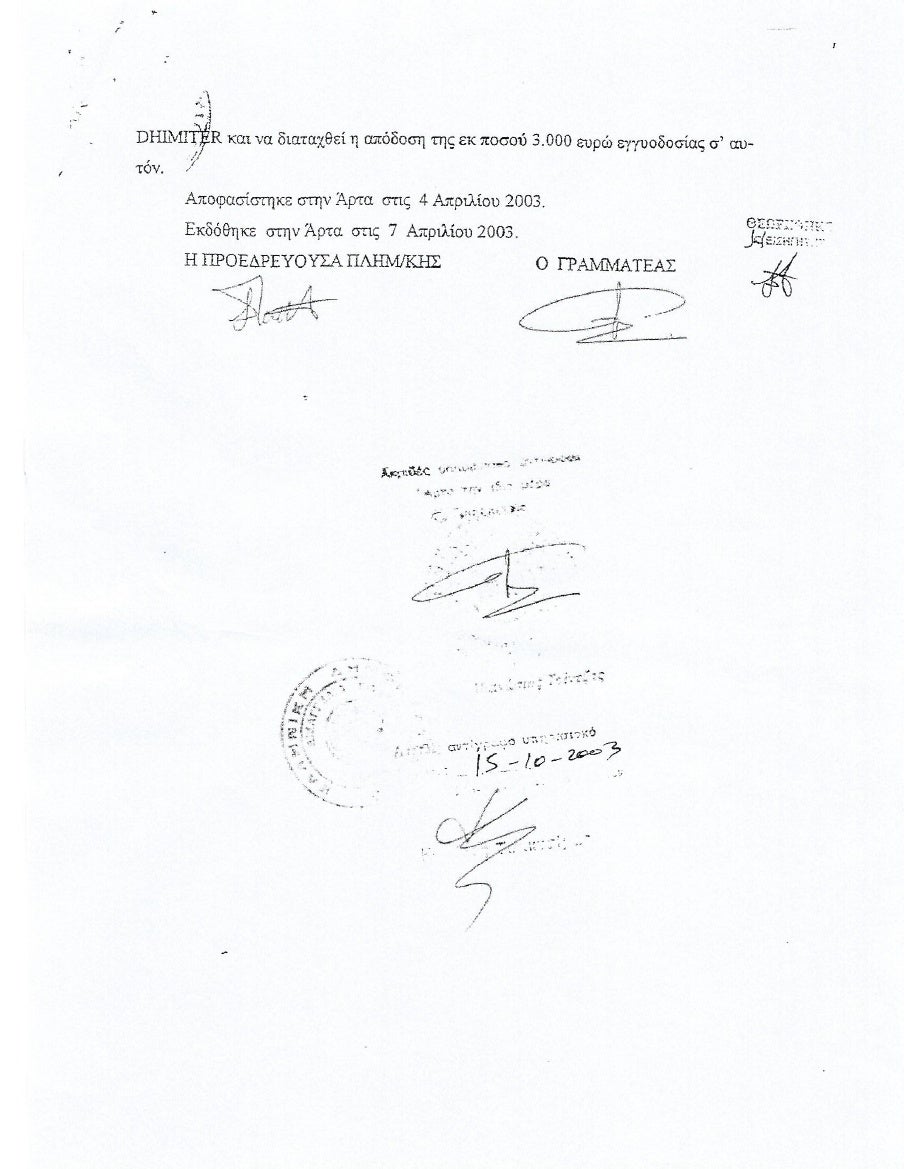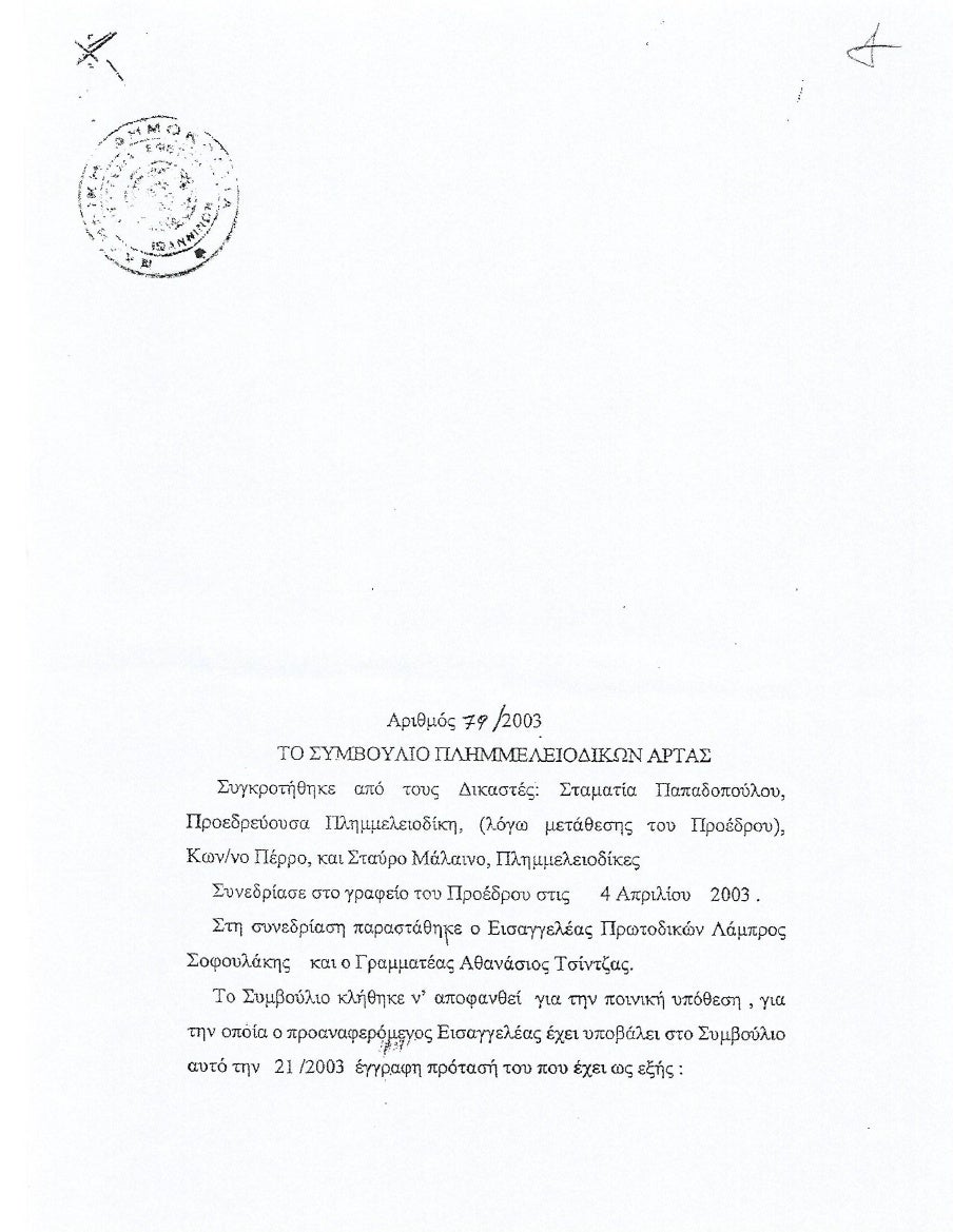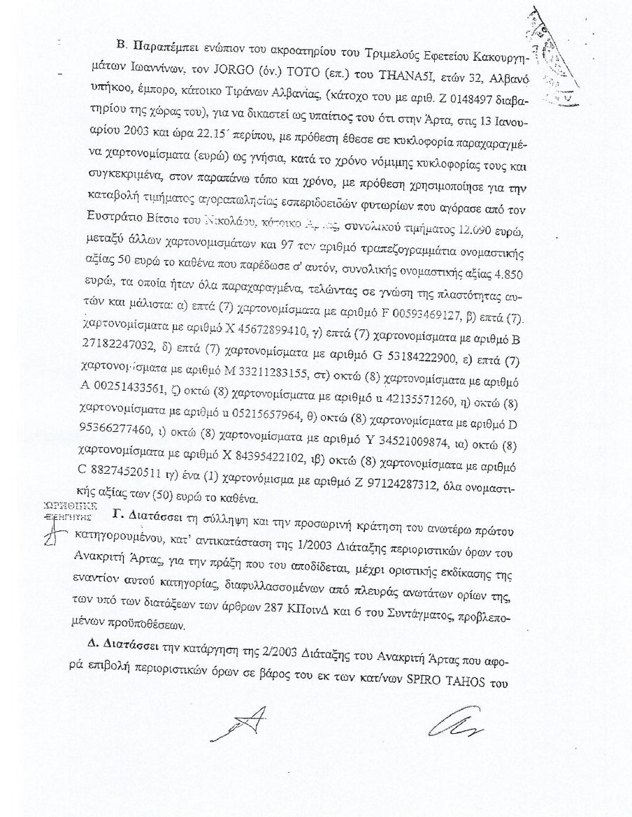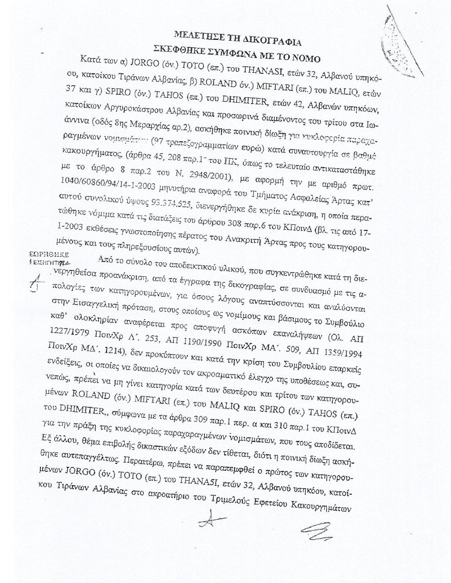 Ky që shikoni këtu është vendimi i Prokurorisë dhe i Gjykatës së Janinës, i Qershorit 2003.