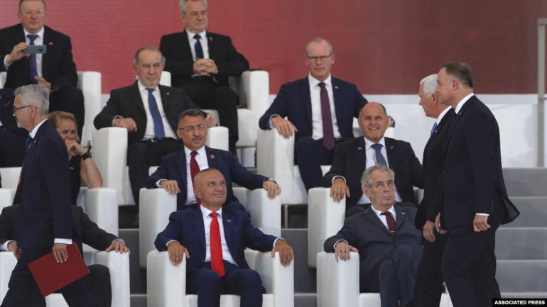 Kancelarja gjermane Angela Merkel dhe Zëvendës Presidenti i SHBA Mike Pence iu bashkuan udhëheqësve polakë për të përkujtuar 80 vjetorin e fillimit të Luftës së Dytë Botërore në Poloni, ku konflikti i kaluar është ende një çështje e ndjeshme politike. Pak vende panë vdekje dhe shkatërrim në përmasat e Polonisë, e cila humbi një të pestën e popullsisë, përfshirë shumicën dërrmuese të 3 milion qytetarëve të saj hebrej.