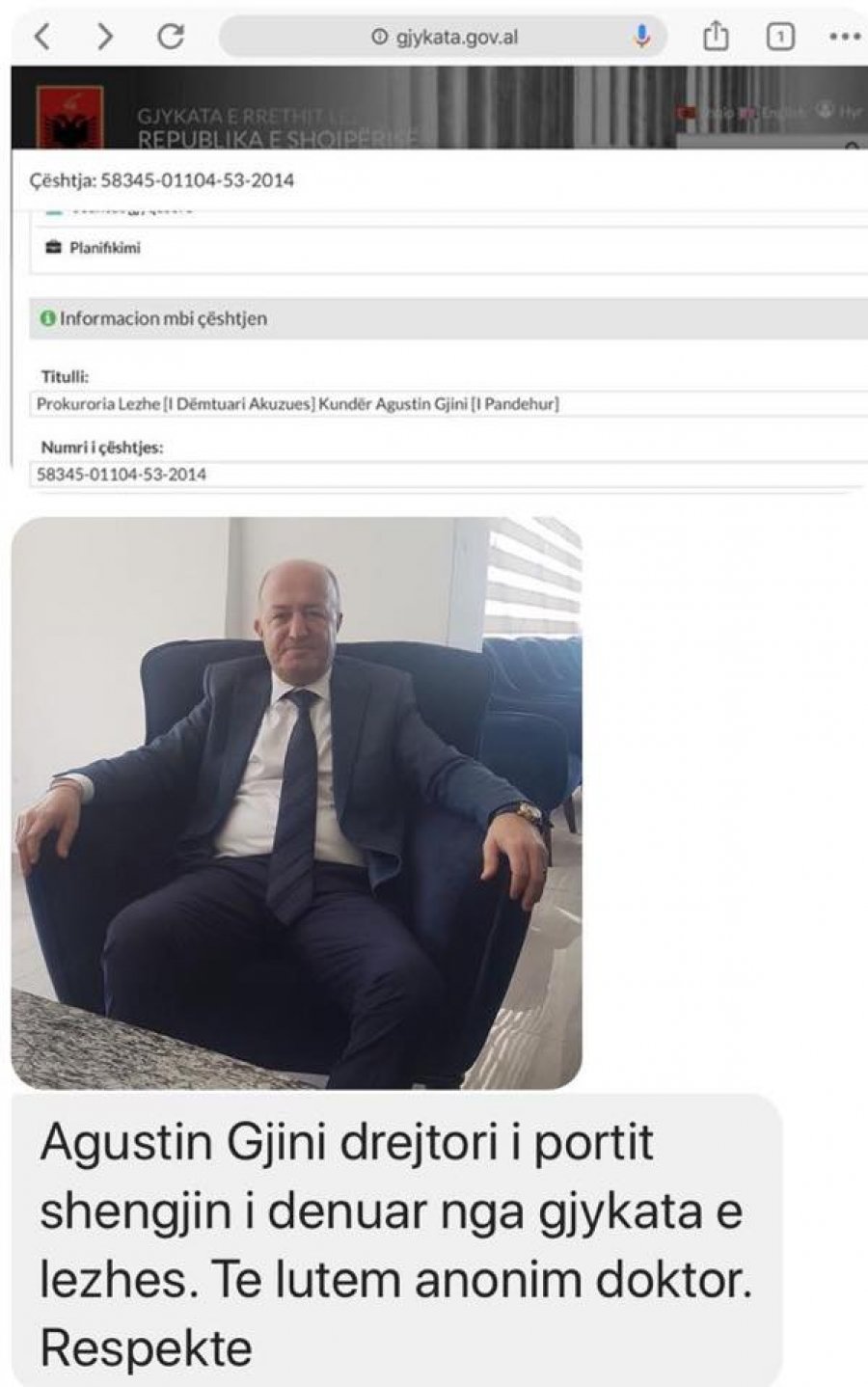 Në një denoncim të fundit nga një qytetar, thuhet se drejtori i Portit të Shëngjinit, Agustin Gjini, ka qenë i dënuar nga Gjykata e Lezhës.