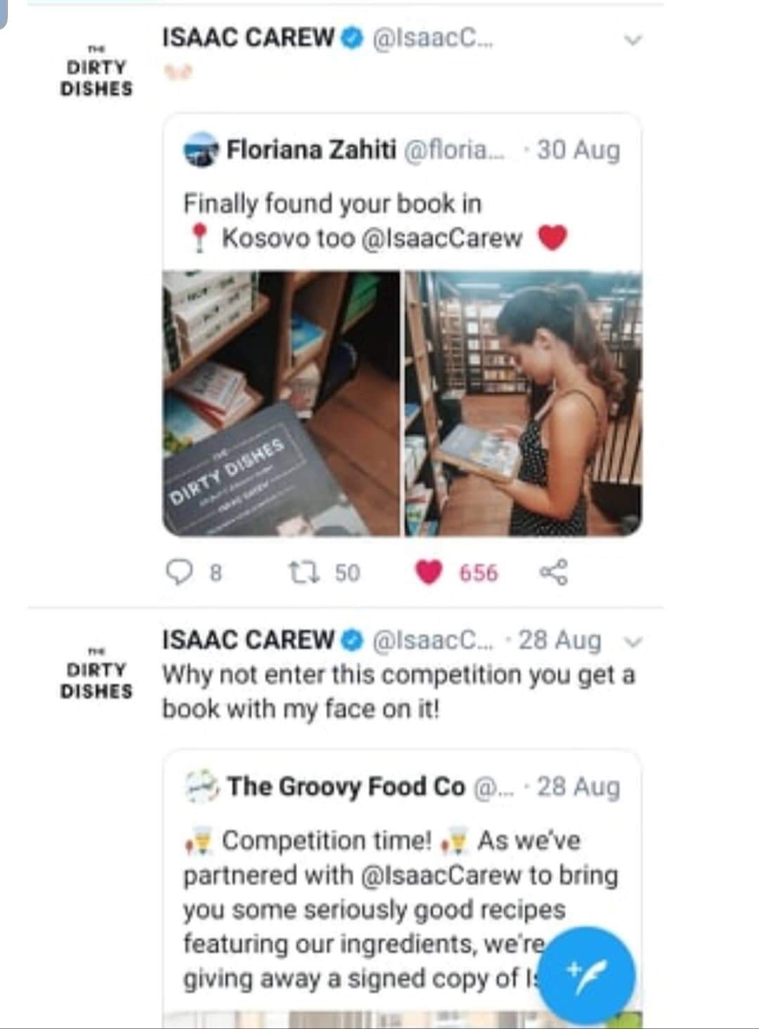 Isaac ka ripostuar foton e një vajze që ka blerë librin, duke e shoqëruar me simbolin e shqiponjës dhe ka treguar se ka ende respekt e dashuri për shqiptarët.