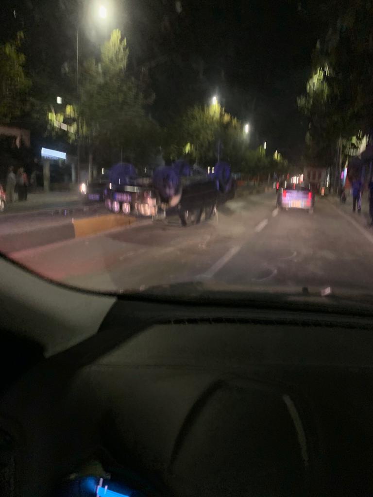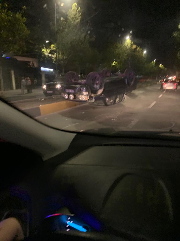 Policia njoftoi se nga aksidenti nuk ka të plagosur, por ka vetëm dëme materiale. Nga pamjet shihet sesi autovetura është përmbysur dhe ndodhet në mes të rrugës.