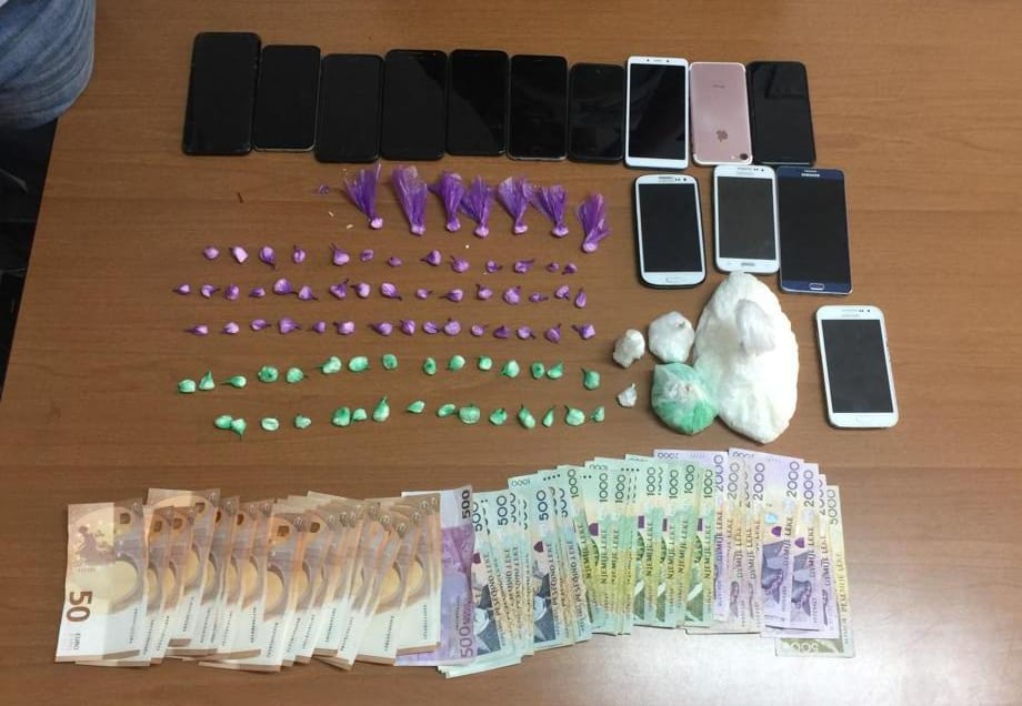 Sekuestrohen lëndë narkotike kokainë, telefona celularë dhe para të përfituara nga shitja e lëndës narkotike.