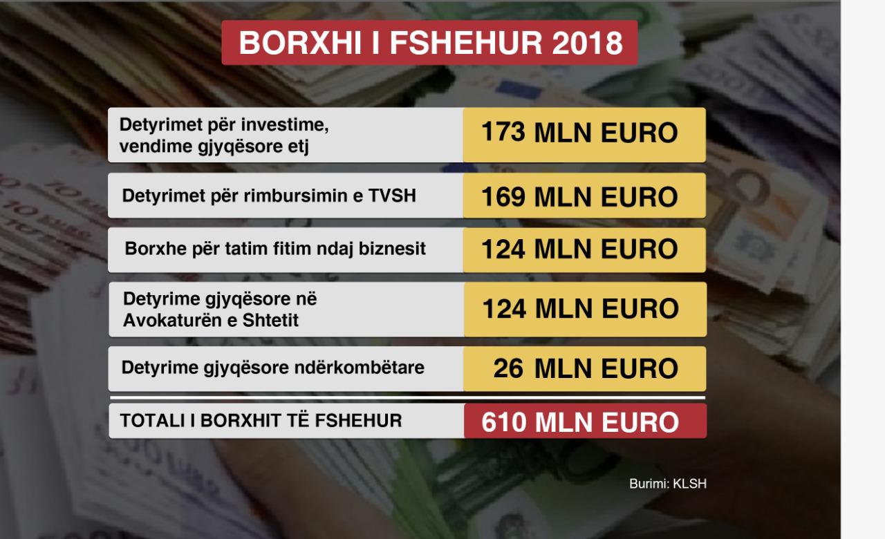 Detyrimet për investime, vendime gjygjësore etj janë rreth 173 milionë euro.
