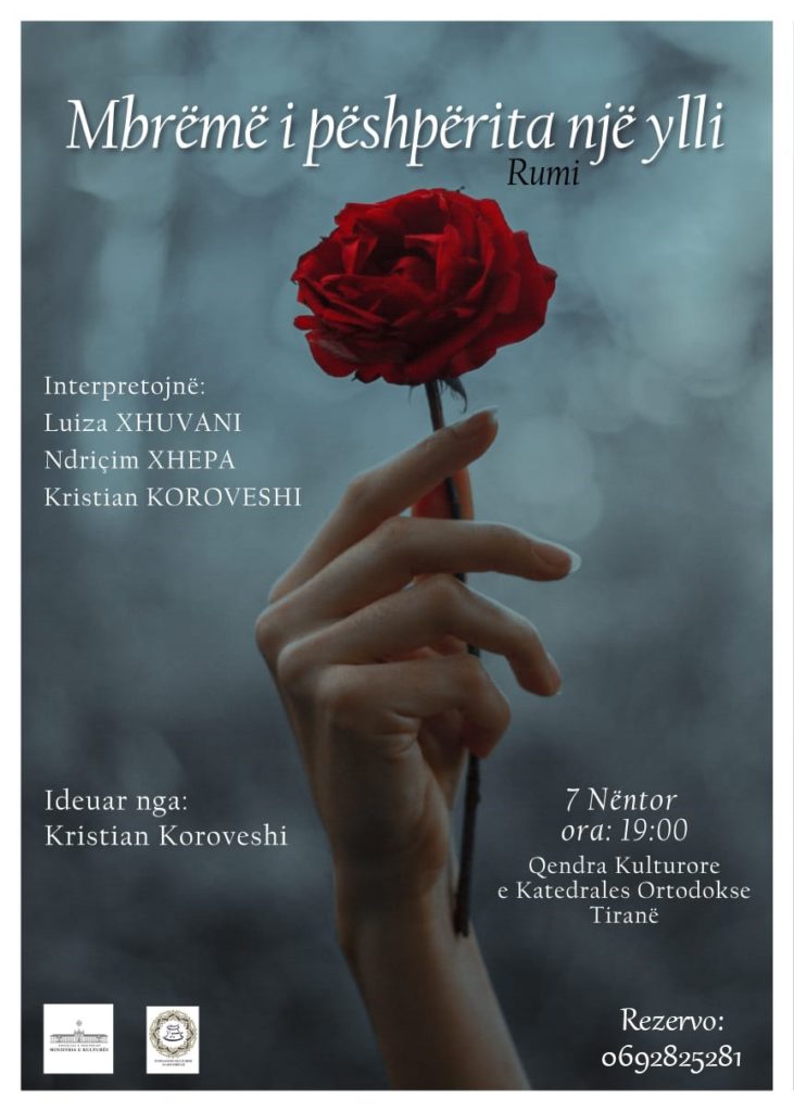 Lirika e dashurisë së Rumit, mishëron njeriun si qenie humane dhe si një vepër e natyrës, vjen në skenën e Qendrës Kulturore të Katedrales Ortodokse “Ngjallja e Krishtit” në Tiranë. Tre aktorët e skenës shqiptare premtojnë emocione të papërsëritshme në këtë natë të teatrit të poemës dramatike. Ju ftojmë në një darkë për dashurinë, dialog poetik për jetën dhe një rrëfim i shpirtit.