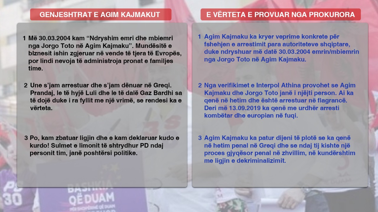 Agim Kajmaku gënjeu qytetarët shqiptarë dhe votuesit e Bashkisë së Vorës për të kaluarën e tij kriminale në Greqi. E vërteta, siç u provua nga prokuroria, është se Edi Rama kandidoi në 30 Qershor një të arratisur nga drejtësia, me urdhër kërkimi në Greqi dhe në Europë deri 6 javë më parë.