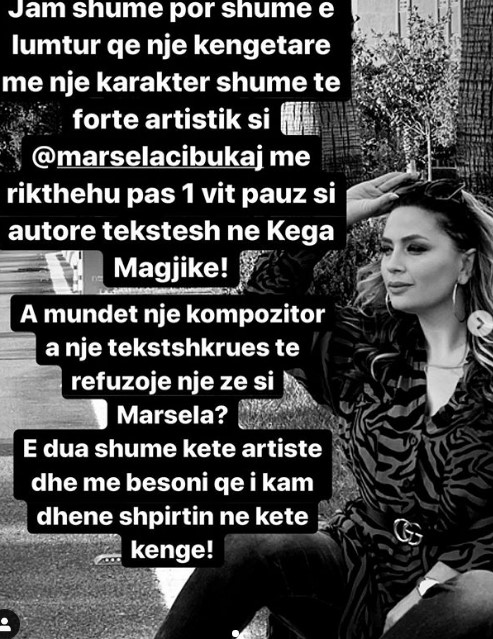 Artistja ka zbuluar me anë të një postimi në ‘Instagram’ se ka krijuar një tekst mjaft të ndjerë për Marsela Çibukaj, e cila do të jetë këtë vit pjesë e festivalit.