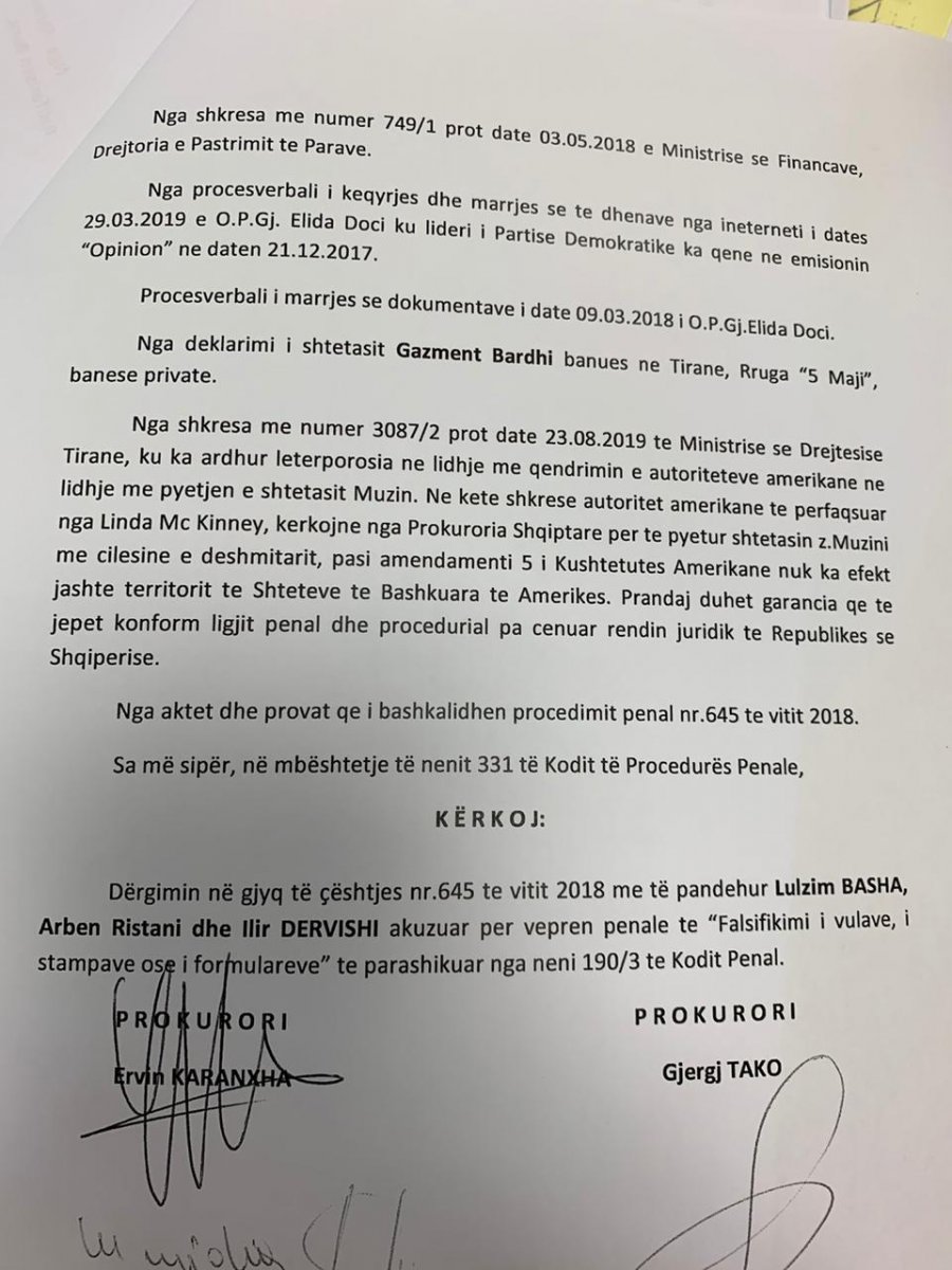 Prokuroria e drejtuar nga Arta Marku ka vendosur të çojë si të pandehur kreun e opozitës Lulzim Basha. Organi i akuzës ka mbyllur hetimet për çështjen e financimeve ruse në SHBA për zgjedhjet parlamentare të vitit 2017, duke e dërguar dosjen në gjykatë.