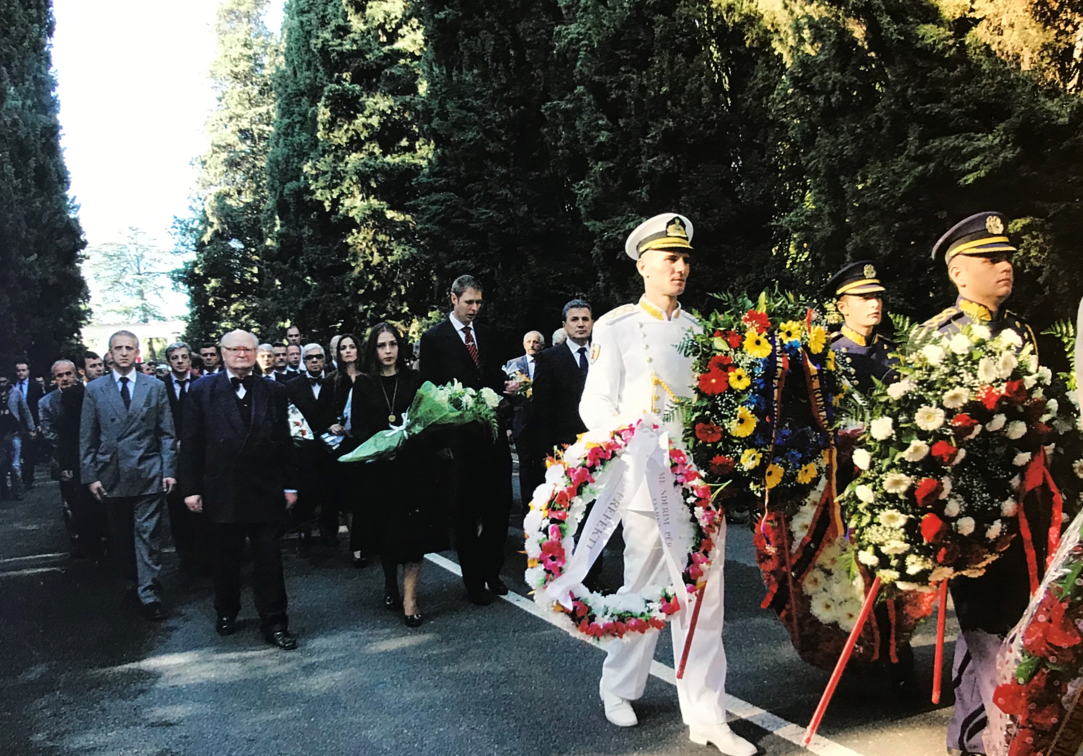 Pas fjalimeve të rastit, dy ushtarë të ceremonialit palosin flamurin kombëtar dhe ia dorëzojnë në mënyrëceremoniale Princ Lekës. Nën tre breshëri me armë dhe të shtëna me top, arkivoli vendoset nga ushtarët e ceremonialit në banesën e fundit dhe me këtë gjestmbyllet ceremonia e rivarrimit të eshtrave të Mbretit Zog I në mauzoleumin e Familjes Mbreterore.