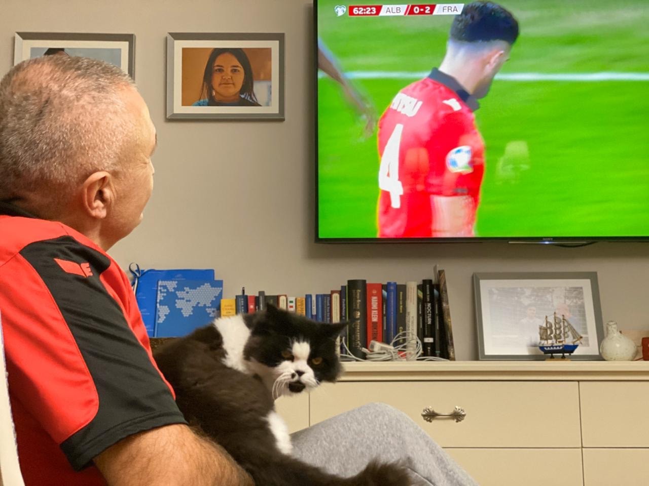 Ndërkohë që Franca është 2 me 0 në avantazh ndaj Shqipërisë, në ndeshjen që po luhet në “Air Albania Stadium”. presidenti Ilir Meta ka postuar para pak minutash një foto me macen e tij, Sasha në facebook, ku shkruan se shpreson akoma.