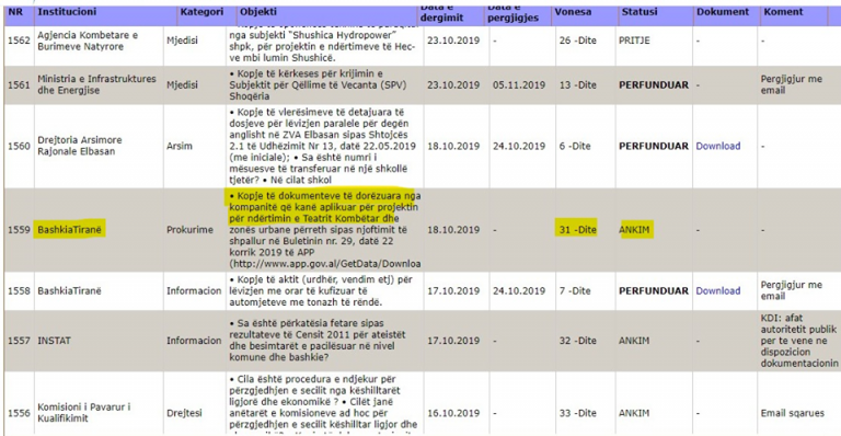 Megjithëse kemi bërë një kërkesë për informacion për të marrë të gjithë dokumentet e paraqitura për tenderin, në shkelje të ligjit Bashkia refuzon ti dorëzojë ato.