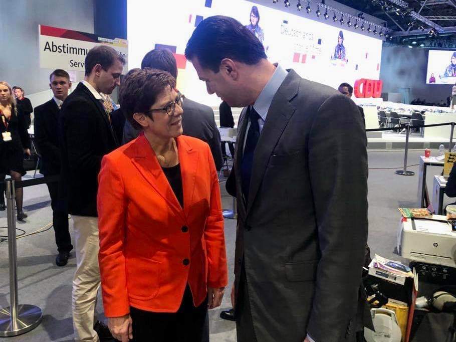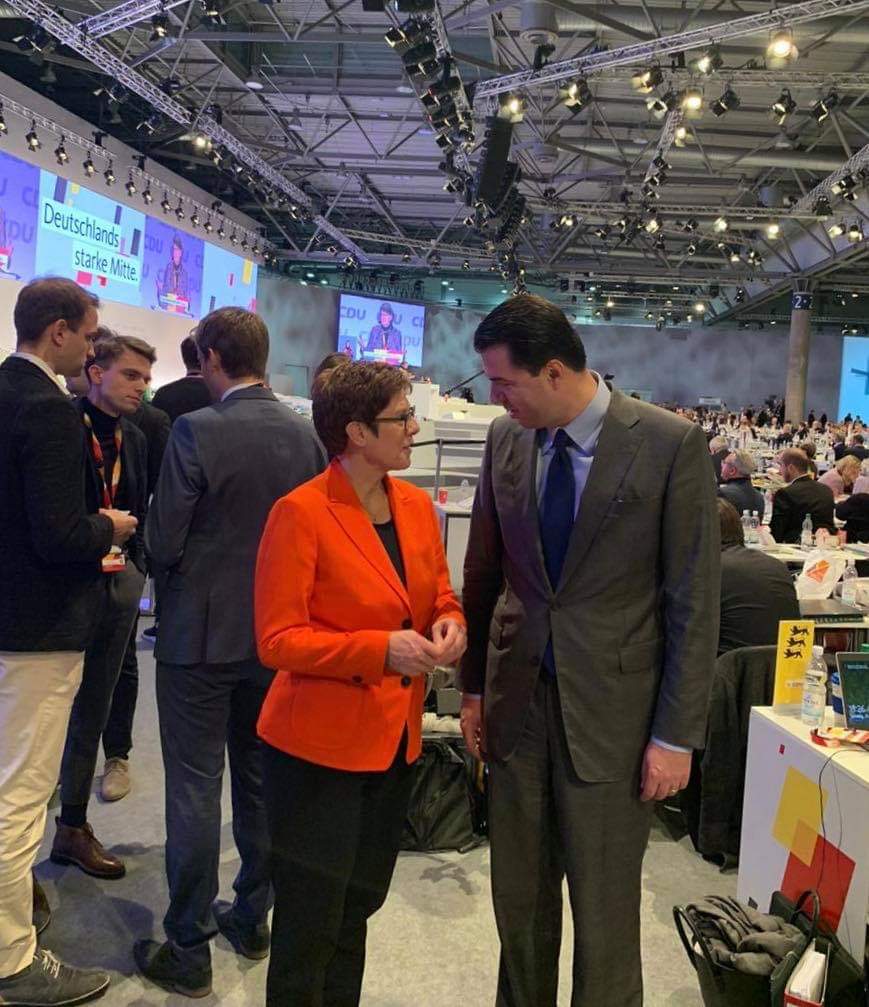 Me kryetaren e CDU-së, Annegret Kramp-Karrenbauer, njëherësh Ministre e Mbrojtes e Gjermanisë pata kënaqësinë të bashkëbisedoja mbi intensifikimin e bashkëpunimit mes Shqipërisë dhe Gjermanisë. I shpreha mirënjohjen për mbështetjen që CDU i jep Shqipërisë për hapjen e negociatave me BE. Partia Demokratike do të angazhohet për të përmbushur të gjithë hapat e përcaktuar në vendimin e Bundestagut, duke nisur me miratimin e reformës zgjedhore që i hap rrugë zgjedhjeve të lira dhe të ndershme.