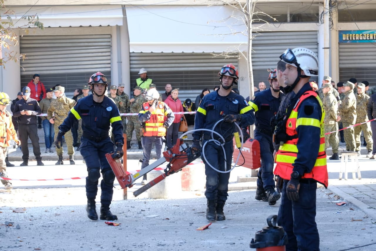 Specialistët francezë të emergjencave civile dhe efektivë të Komandës Mbështetëse të Forcave të Armatosura vijojnë operacionin e kërkim-shpëtimit në Durrës, zona e njohur si “Dy Gjelat”.