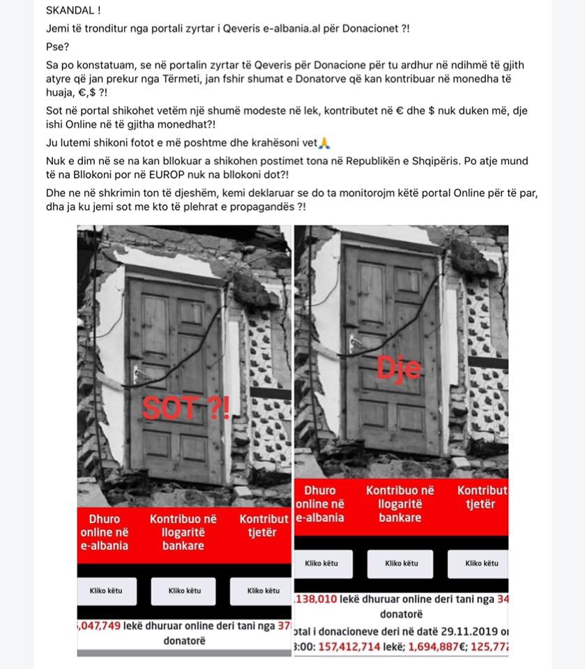 ‘Denoncohet fshirja e donacioneve ne monedhe te huaj nga portali i qeverise. Lexoni postimin dhe shikoni foton e tij. sb