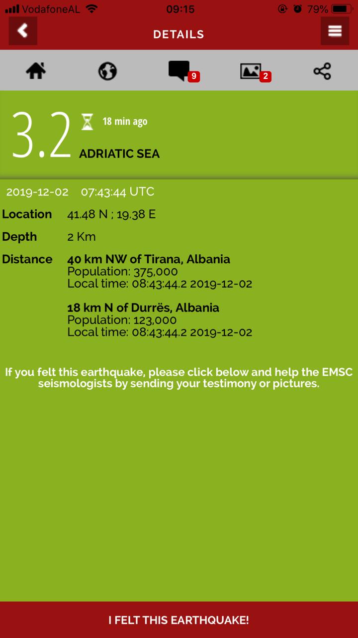Sipas ESMC-së, magnituda ka qënë 3.2 ballë dhe me epiqendër në detin Adriatik.