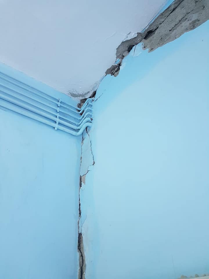 Këto janë fotot që denoncohen nga personeli i shqetësuar i maternitetit të ri, për dëmet që janë shkaktuar në institucionin që sjell jetë. Instituti i ndërtimit e ka verifikuar godinën, që më 27 nëntor. Në aktin e ekspertimit, thuhet se për shkak të tërmetit, përvec dëmeve në godinën bazë, ka probleme serioze në shtesën 4 katëshe dhe këshillohet ndërhyrje e menjëhershme, sepse lëkundje të tjera mund të sjellin shkëputje të shtesës!!!! Pra situata është tejet serioze. Cfarë bën shteti i papërgjegjshëm? Përvecse e fsheh, sepse nuk është raportuar në asnjë nga informacionet që Bledi Cuci nxjerr dy herë në ditë, shikoni zgjidhjen mesjetare që i jepet: të carat mbulohen me carcafë operatorë!!!!!
