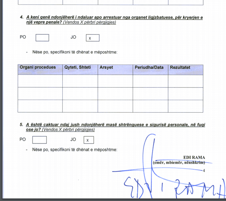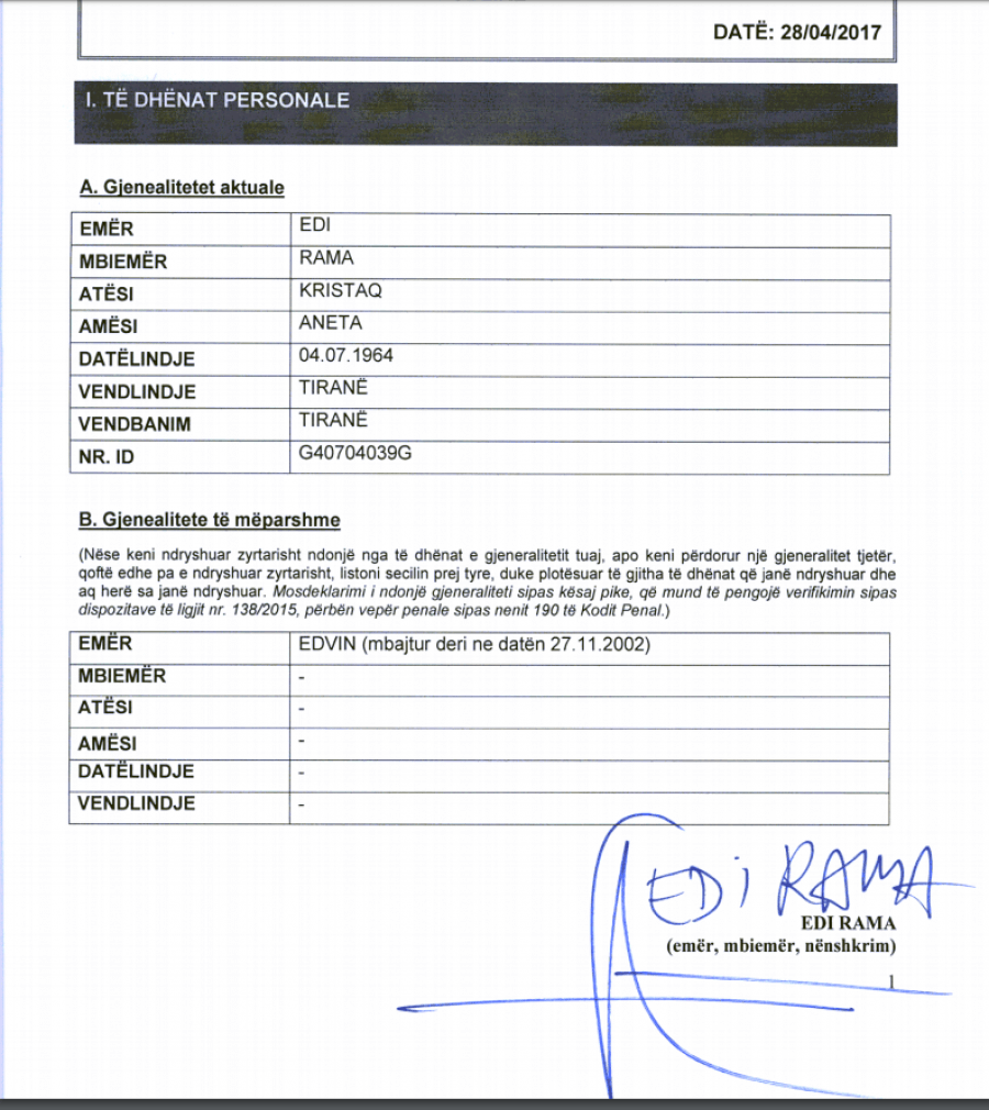Sipas formularit të dekriminalizimit që ka paraqitur si kandidat për deputet për zgjedhjet e kaluara, për herë të parë Edi Rama tregon dhe firmos ndryshimin e emrit, gjë për të cilën nuk ishte prononcuar kurrë, edhe pse Sali Berisha e akuzonte sistematikisht ndër vite, shkruan gazetari Poli Hoxha ne nje shkrim ne syri.net.