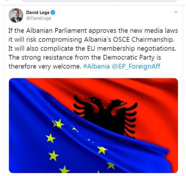 “Nëse Parlamenti shqiptar miraton ligjet e reja për median, ai vë në rrezik kryesimin nga Shqipëria të OSBE-së.