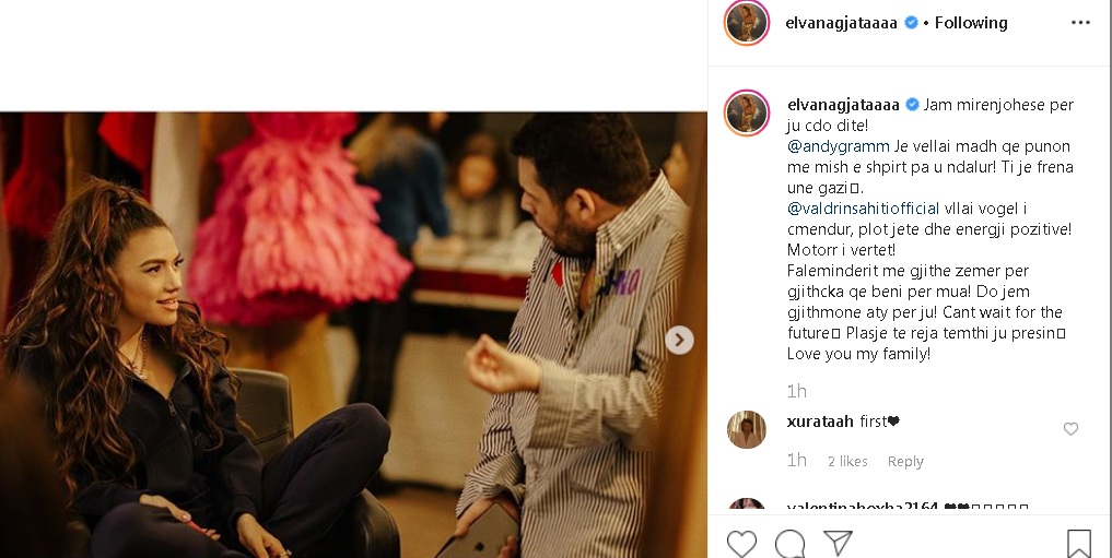 Kete here, ajo i ka kushtuar një dedikim të veçantë dy bashkëpunëtorëve të saj më të ngushtë, stilistit Valdrin Sahiti dhe Dj Andy Gramm, duke i cilësuar në postimin e fundit si vëllezërit e saj.