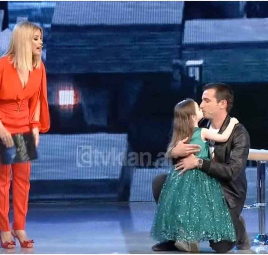 Aty shfaqet kryebashkiaku i Tiranës Erion Veliaj teksa puth në buzë një vajzë të vogël.