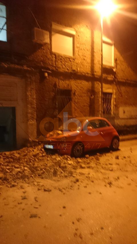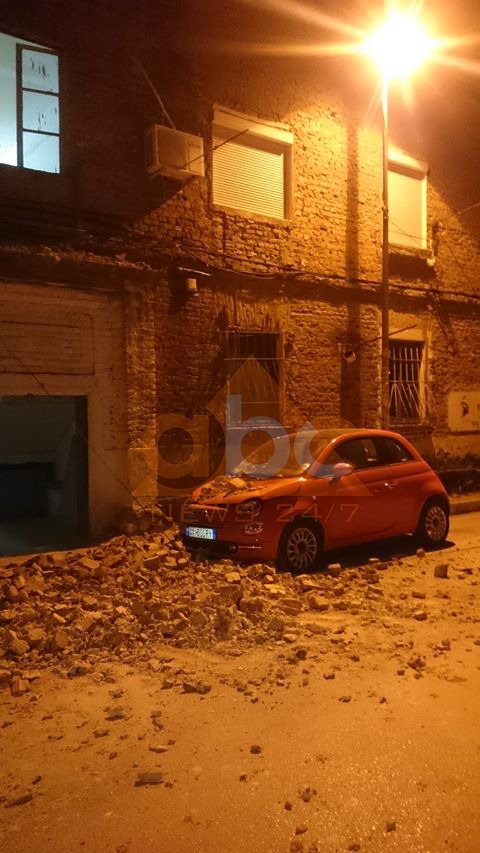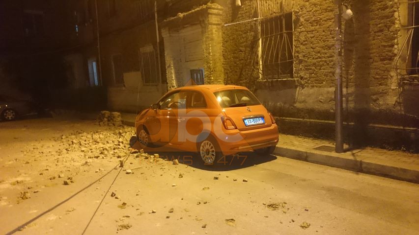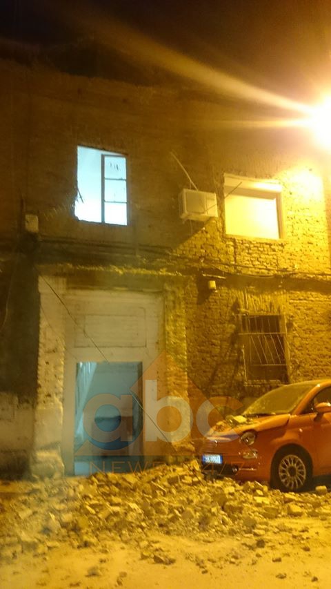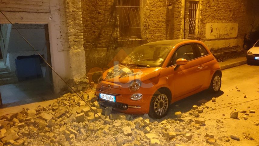 Stuhia i ka lëshuar tullat e palatit mbi një automjet që ndodhej i parkuar poshtë godinës. Mjeti i demtuar është tip Fiat 500 me targë AA500RY. /abcnews.al