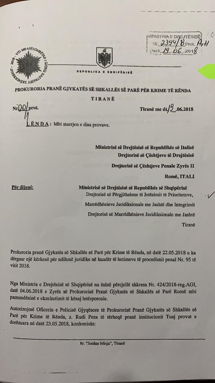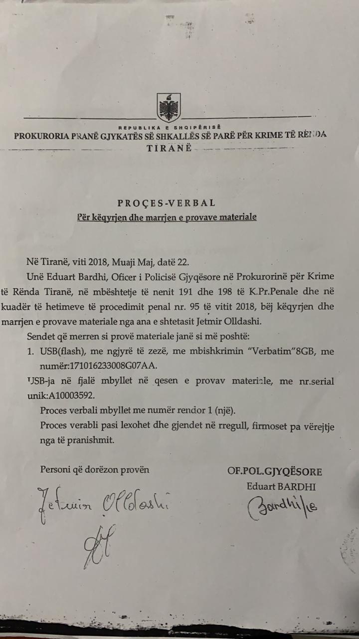 Një nga faktet e falsifikuara në vendimin e gjykatës është mos dorëzimi i materialit origjinal. Gazetari Olldashi e ka dorëzuar materialin origjinal, por qëllimisht kur është ndarë dosja e trafikimit të narkotikëve, nga ajo e kallëzimit të rremë, materiali origjinal është lënë pjesë e dosjes së trafikimit. Në gjykim është kërkuar administrimi i kësaj prove, por kjo kërkesë është rrëzuar nga gjyqtari, në mënyrë të qëllimshme: Sot po ju tregoj procesverbalin e dorëzimit të materialit bruto nga gazetari Olldashi (dokumenti). Ky material, materiali bruto është dërguar në Itali për ekspertizë, por më pas ky material nuk u dërgua tek ekspertët britanikë.