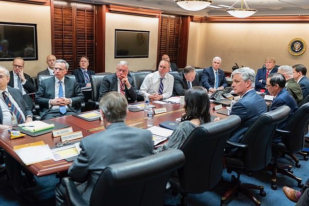I gjithë ekipi qëndron serioz, ndërsa presidenti amerikan mban duart e kryqëzuara. Mediat iraniane raportuan për viktima, por Trump tha se nuk është lënduar asnjë amerikan apo irakian, gjatë sulmit.