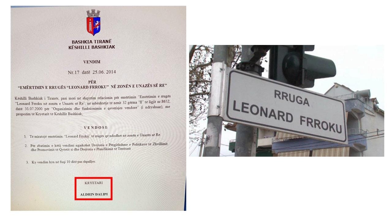 Vendimi i Këshillit Bashkiak në foto tregon se ishte PS ajo që e propozoi dhe e miratoi emrin e rrugës, siç ka bërë, sa herë ka patur pushtet, duke vendosur emra kriminelësh që kanë vrarë dhe torturuar me mijëra shqiptarë gjatë regjimit diktatorial.