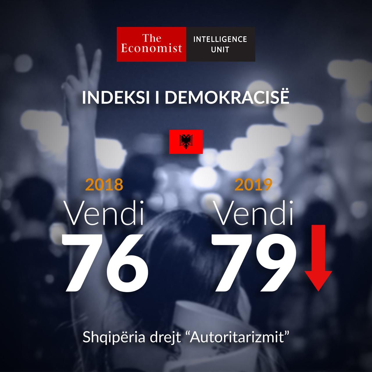 “Indeksi i Demokracisë i @TheEIU e klasifikon Shqipërinë regjim hibrid një hap larg autoritarizmit, për shkak të mungesës së një qeverie funksionale, parregullsive në zgjedhje, korrupsionit të lartë, sundimit të dobët të ligjit dhe mungesës së drejtësisë së pavarur.
