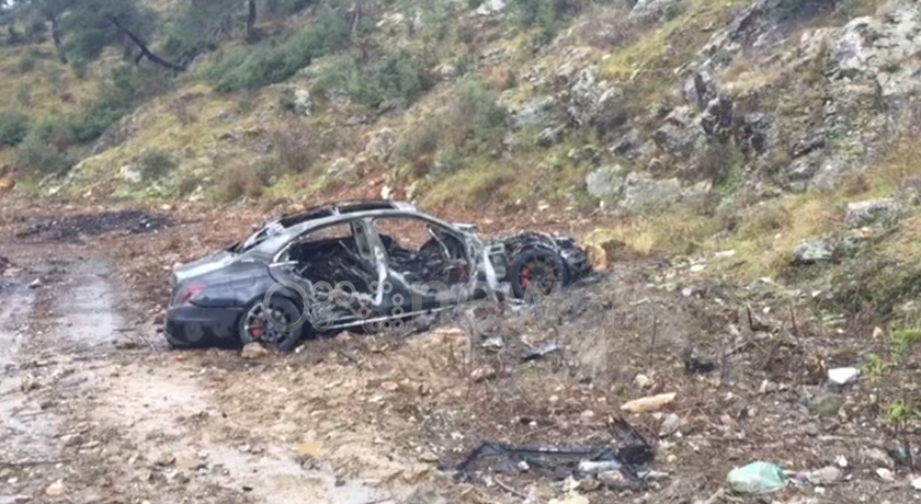 Një automjet luksoz tip Mercedes Benz ka dalë nga rruga dhe më pas është përfshire nga flakët.