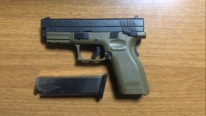 Gjatë kontrollit të automjetit, Policia gjeti dhe sekuestroi në cilësinë e provës materiale një armë zjarri pistoletë, me krehër me 16 fishekë.