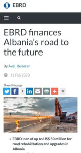 EBRD ka miratuar një hua për Shqipërinë për rehabilitimin e tre segmenteve rrugore kombetare me gjatësi totale 70,7 km me kosto totale rreth 45 milionë euro, pra me rreth 600 mijë euro për km dhe me standarde europiane. Pjesë e projekti është edhe rehabilitimi i rrugës Vlorë-Orikum 10.6 km e gjatë.