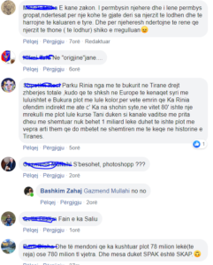 Poshtë postimit të tij në rrjetet sociale nuk kanë munguar komentet teksa shprehin pakënaqësinë në lidhje me rehabilitim për keq që iu bë parkut, nga më të mirat që ka pasur vendi.