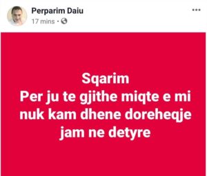 Në një postim në facebook, Daiu ka sqaruar të gjithë qytetarët, se ai nuk ka dhënë dorëheqje dhe ndodhet ende në detyrë.