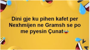 Ndersa ka shperthyer humori ne rrjet nusja e nipit te saj Ermalit qe sapo doli bga burgu per trafik kokaine shkruan se ishte me fat qe njohu Nexhmijen. Kenegtarja Rezarta Shkurta nuk e ka fshehur asnjehere simpatine e saj per diktatoren.