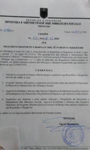 Ministria e Shëndetësisë ka shpërndarë të gjitha urdhrat e marra nga qeveria me qëllim parandalimin e përhapjes së COVID -19 në Shqipëri.