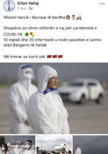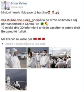 Veliaj ka shkruajtur sot se Pas Rusise dhe Kines, tani eshte Shqiperia qe po ndihmon Italine.