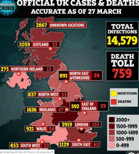 Kjo eshte harta e shperndarjes se rasteve me koronavirus ne Angli: