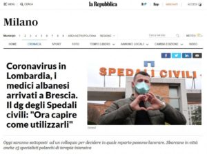 “Shqiptarët mezi presin të hyjnë në punë menjëherë dhe tashmë kanë vizituar Spitalet Civile dhe shprehen të gatshëm për të ndihmuar. Ata janë vendosur në një hotel afër spitalit dhe tregojnë se “kjo përvojë do të na shërbejë sepse nëse gjërat shkojnë keq në Shqipëri do të kemi përvojën e nevojshme. Kjo është shtëpia jonë, ne jemi në Brescia dhe kemi një dëshirë të madhe për të ndihmuar”, shtoi ai.