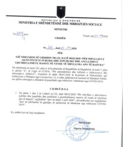 Sipas vendimeve të mëparshme kufizimi ishte deri më datën 3 prill, por sot Ministria e Shëndetësisë ka firmosur në bllok të gjitha vendimet, duke e shtyrë afatin e ndalimit të aktiviteteve deri në afat të papërcaktuar.