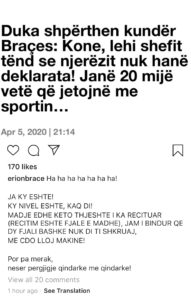 Brace ka postuar ne twitter nje reagim permes te cilit pervec tallet me Duken thote se do te pergjigjet neser per kete gje.