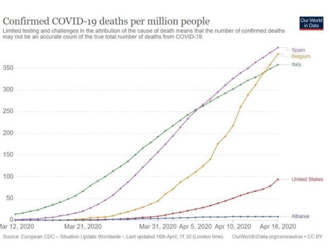 Rama publikoi edhe grafikun e vdekjeve pwr milione banore, ku sipas llogarive te tij Shqiperia ka numer te paperfillshem vdekjesh per 1 milione banore.