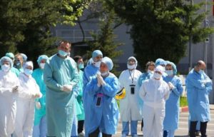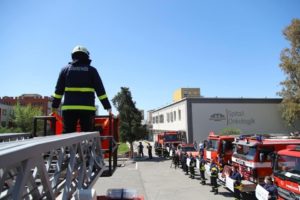 Zjarrfikësit vizitojnë personelin e Spitalit Infektiv, për t’u shprehur mirënjohjen e solidaritetin e tyre luftëtarëve të vijës së zjarrit.